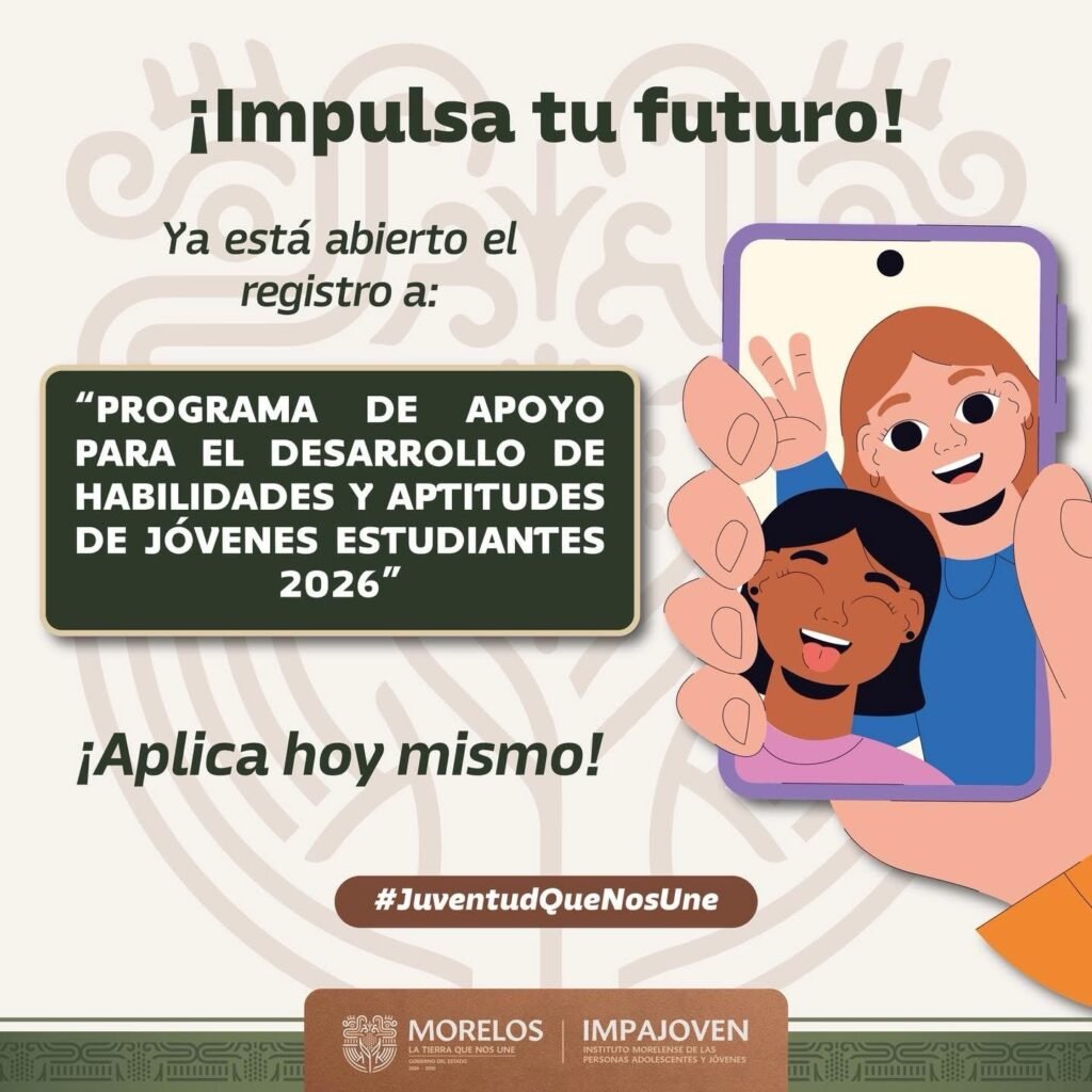 Si eres estudiante de nivel superior en #Morelos y tienes entre 18 y 29 años, ya puedes postularte al Programa de Apoyo para el Desarrollo de Habilidades y Aptitudes de Jóvenes Estudiantes 2026 💼✨