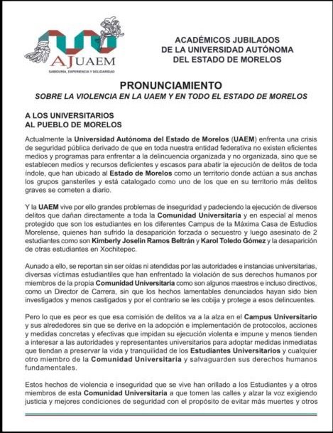 ACADÉMICOS JUBILADOS EN CONTRA DE LA VIOLENCIA EN LA UAEM