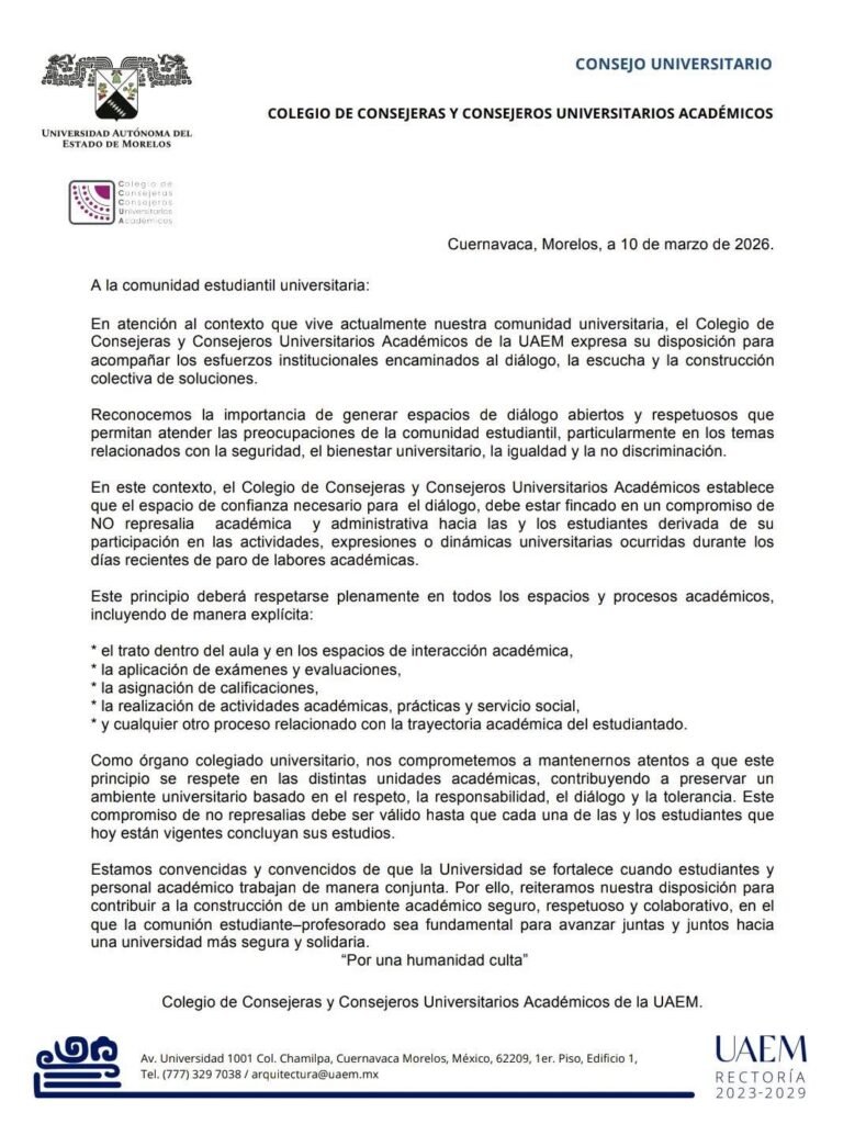 ACADÉMICOS Y CONSEJEROS DE LA UAEM A FAVOR DEL DIÁLOGO