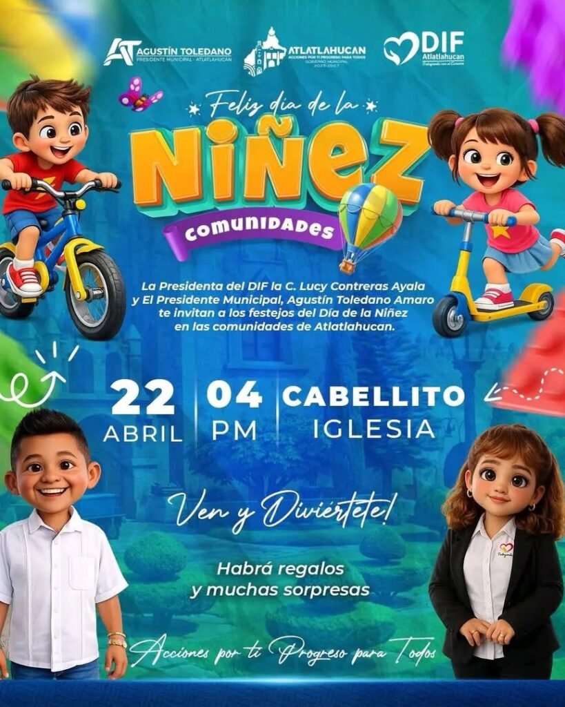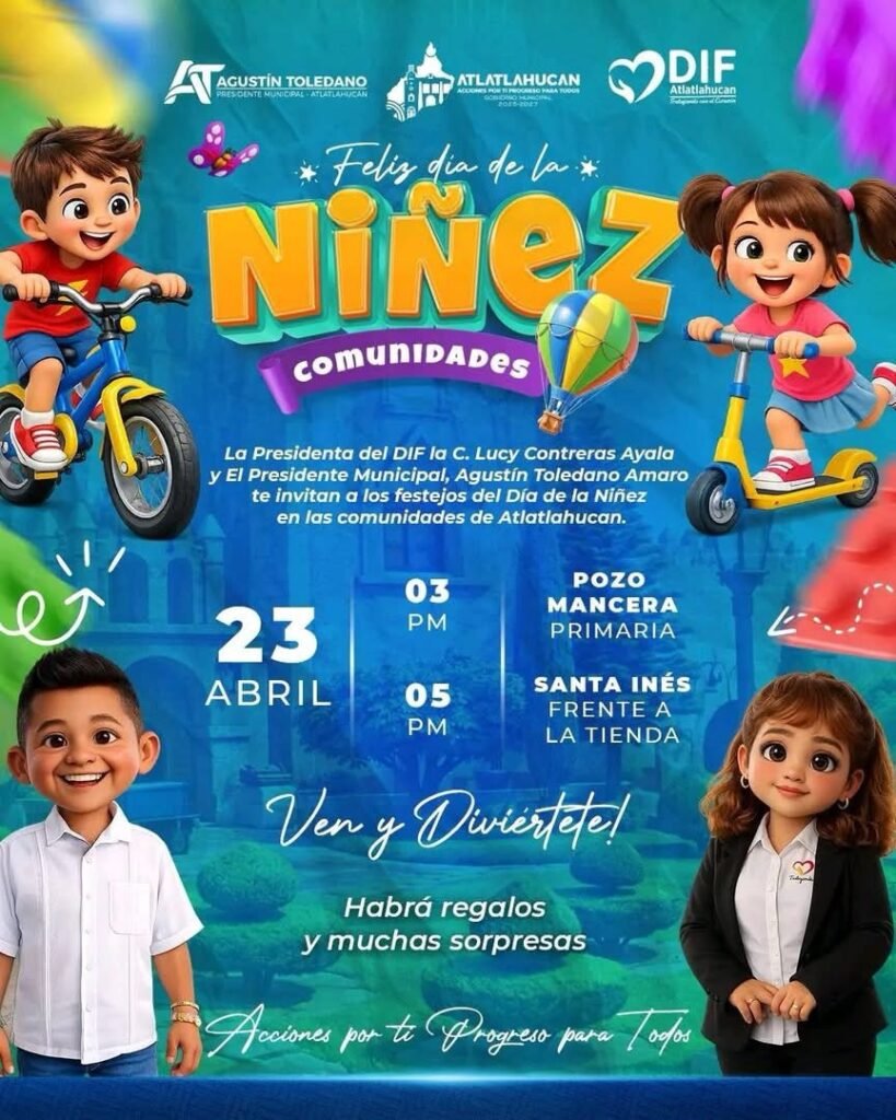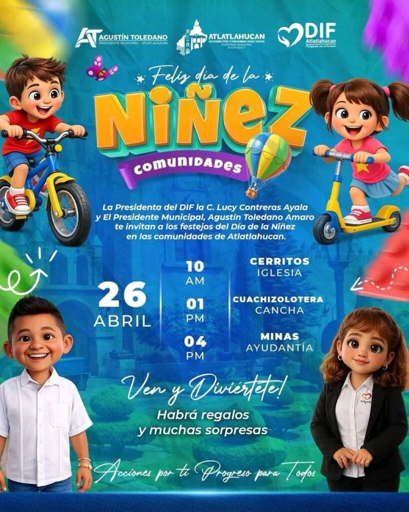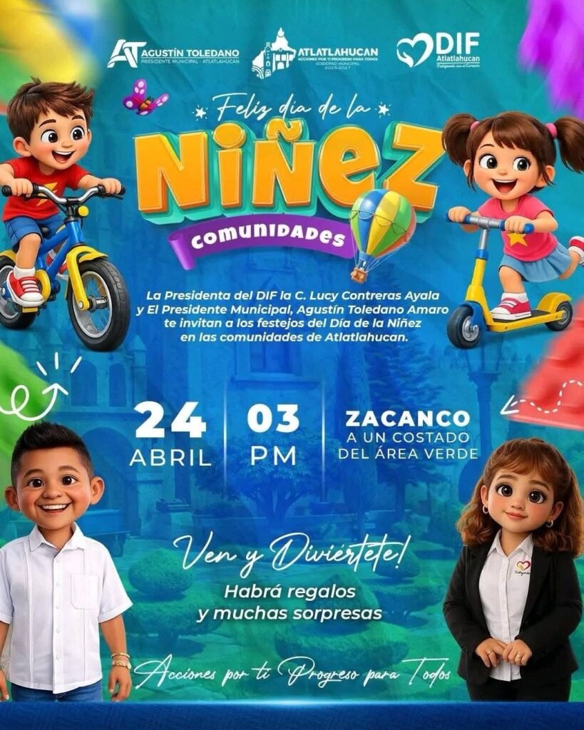 ¡Llegó el momento de festejar la imaginación y la esperanza de nuestras niñas y niños! El SMDIF Atlatlahucan y el Gobierno Municipal hemos preparado tardes increíbles llenas de risas y sorpresas para todos los pequeñines de nuestra comunidad. 🍭🎡
