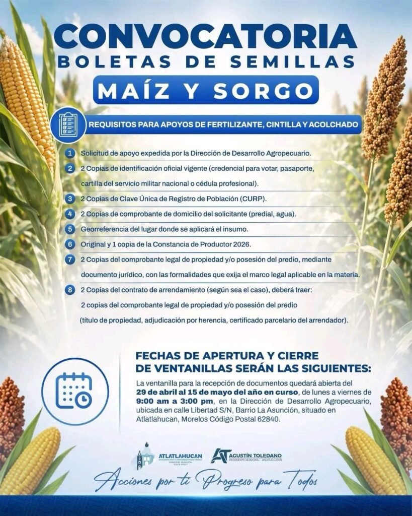 ¿Quieres fortalecer tu cosecha este 2026? Ya está abierta la convocatoria para apoyos al campo. ¡Es momento de impulsar juntos nuestra tierra!