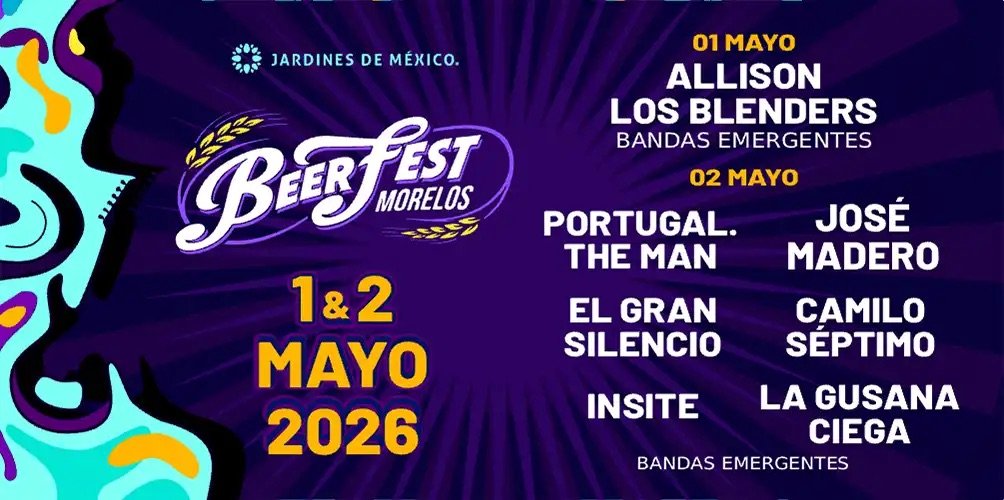 La Secretaría de Turismo estatal, a cargo de Daniel Altafi Valladares, confirmó que Morelos será sede de la décimo primera edición del Beer Fest 2026, que se realizará el 01 y 02 de mayo en Jardines de México, en el municipio de Jojutla, como parte de la agenda de eventos que fortalecen la actividad turística y económica del estado.