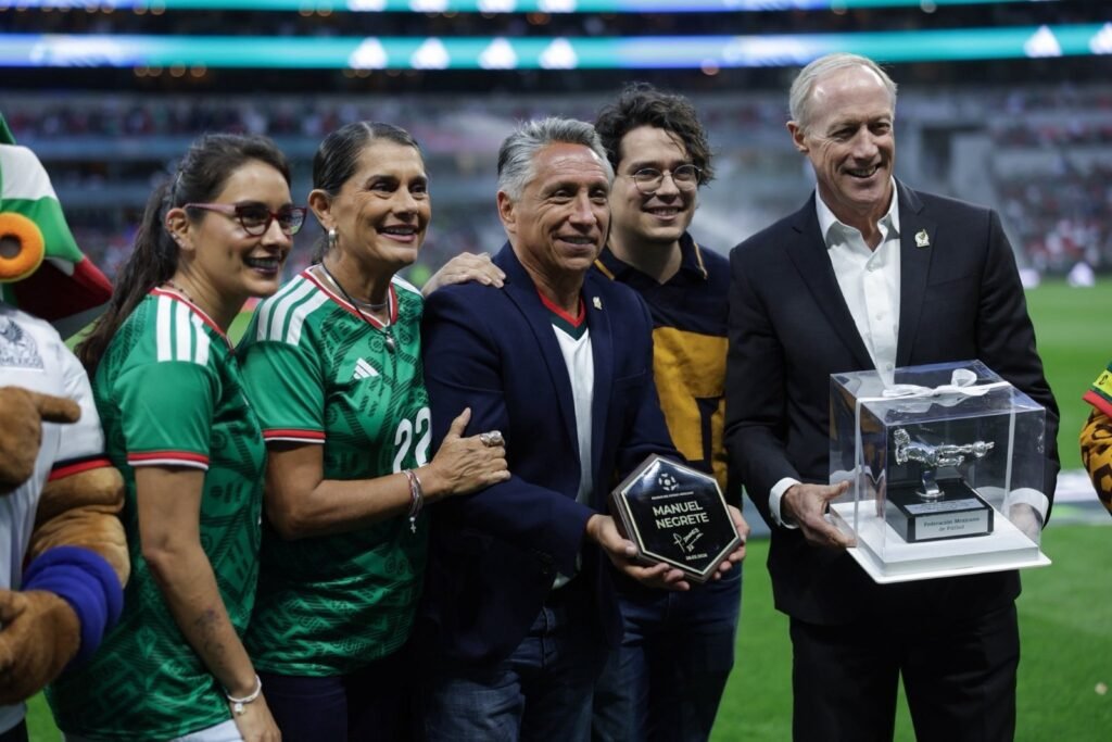 En este contexto, José Mariaca García, director general de MiPyMEs, informó que, mediante la marca “Namar Joyería”, el artesano morelense René Martínez Álvarez elaboró una pieza única inspirada en uno de los goles más memorables del balompié mexicano, como parte del homenaje realizado al exfutbolista Manuel Negrete.